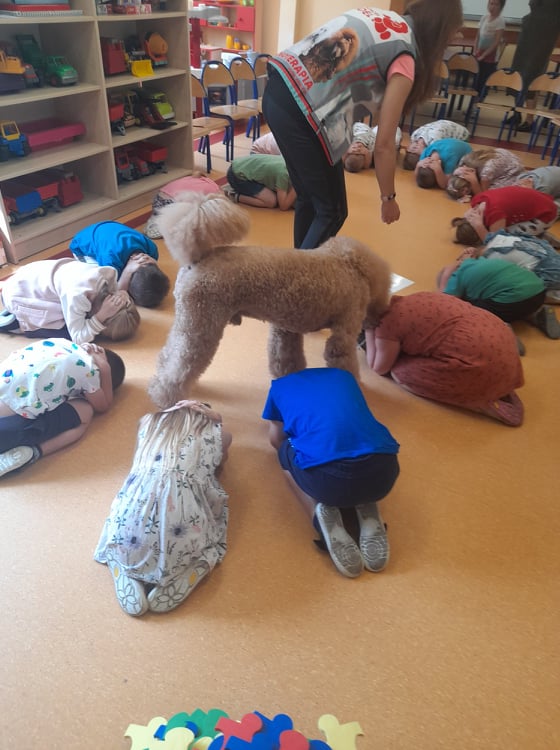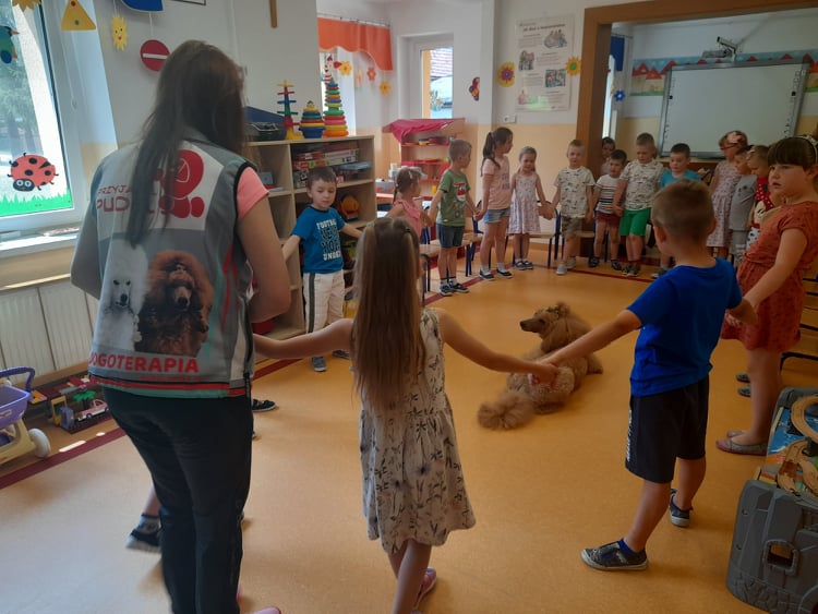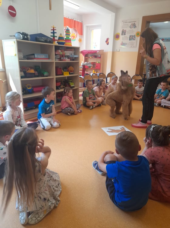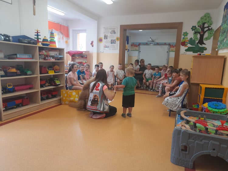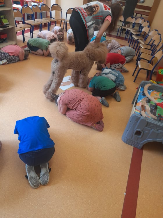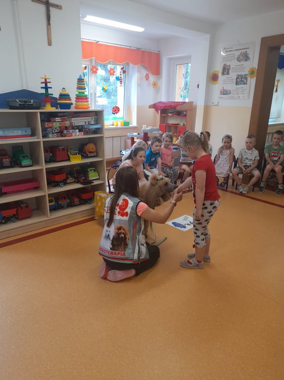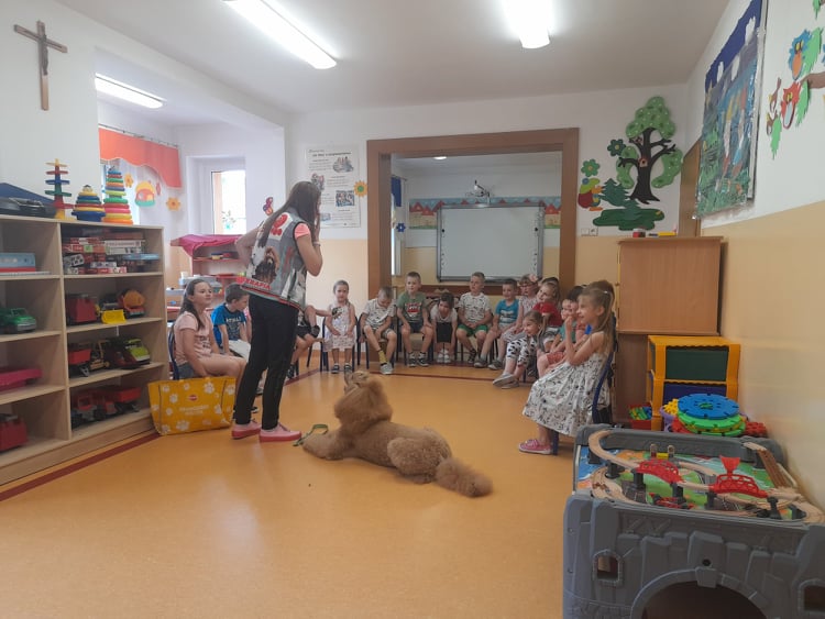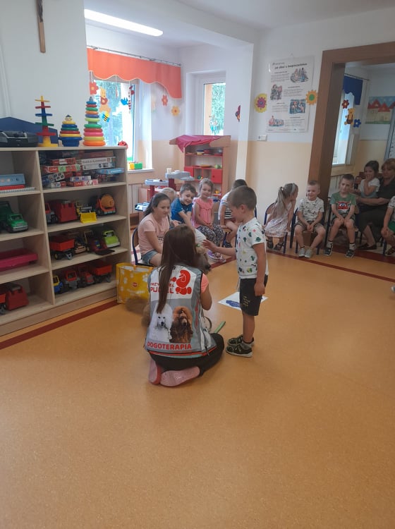 Nasze przedszkole odwiedził wspaniały pies. Dzieci zostały przeszkolone jak traktować zwierzęta oraz jak zachować się w przypadku spotkania z psem agresywnym. Dzieci miały również okazję pogłaskać i pobawić się z psem.
