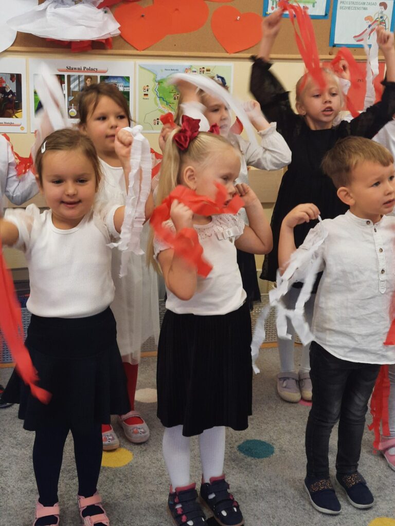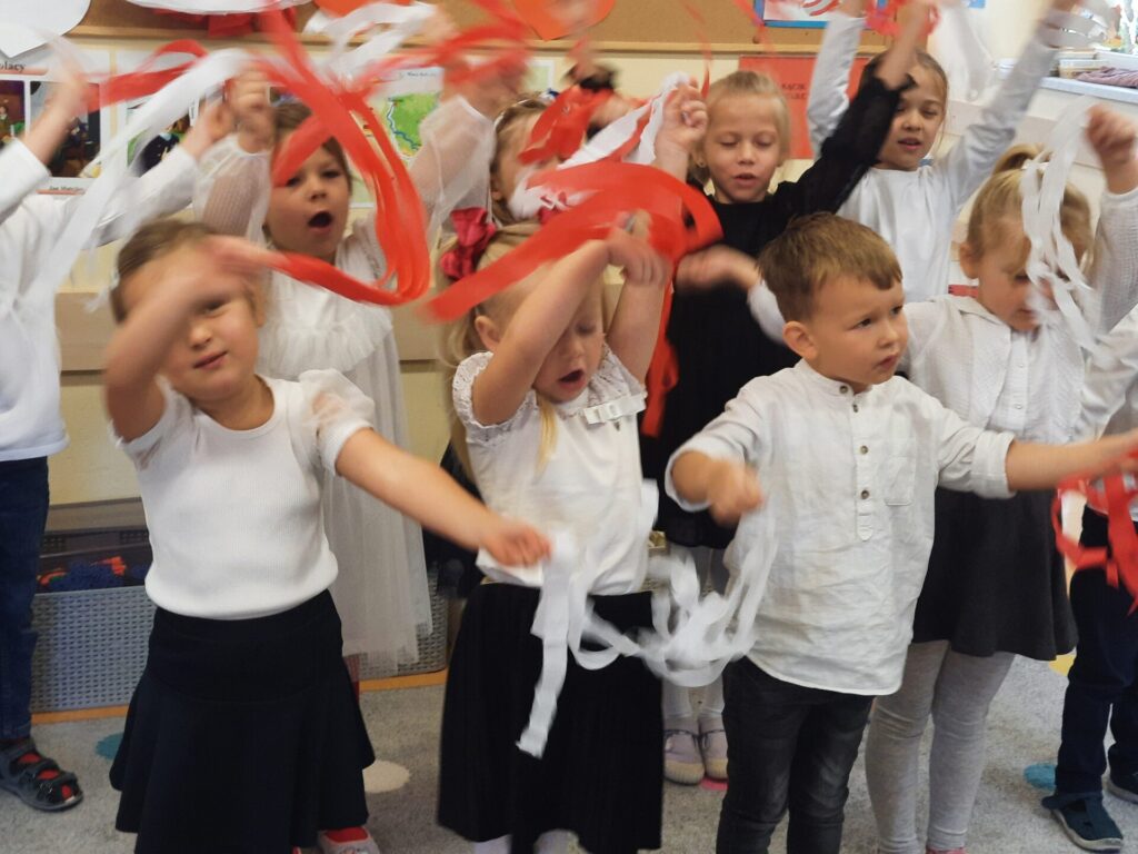 Udział w akcji poprzedziły zajęcia edukacyjne i zabawy wprowadzające maluchy i starszaki w tematykę Święta Niepodległości. W ramach tych działań przedszkolaki: