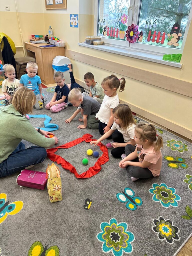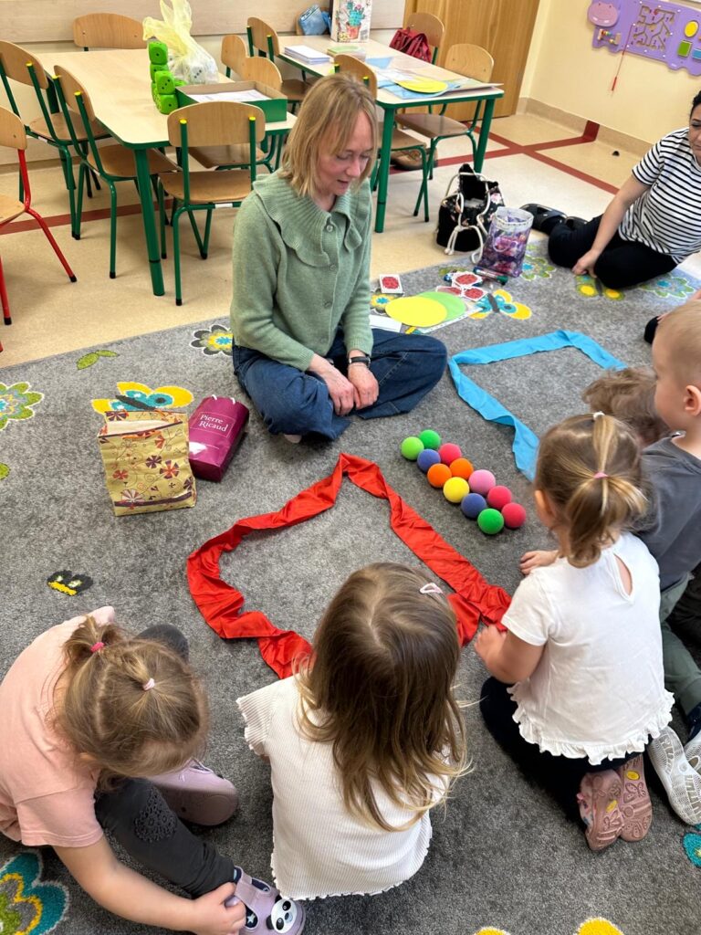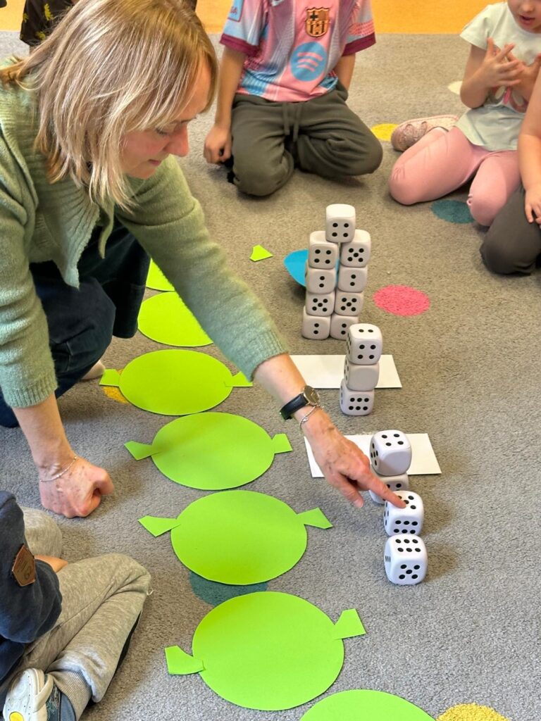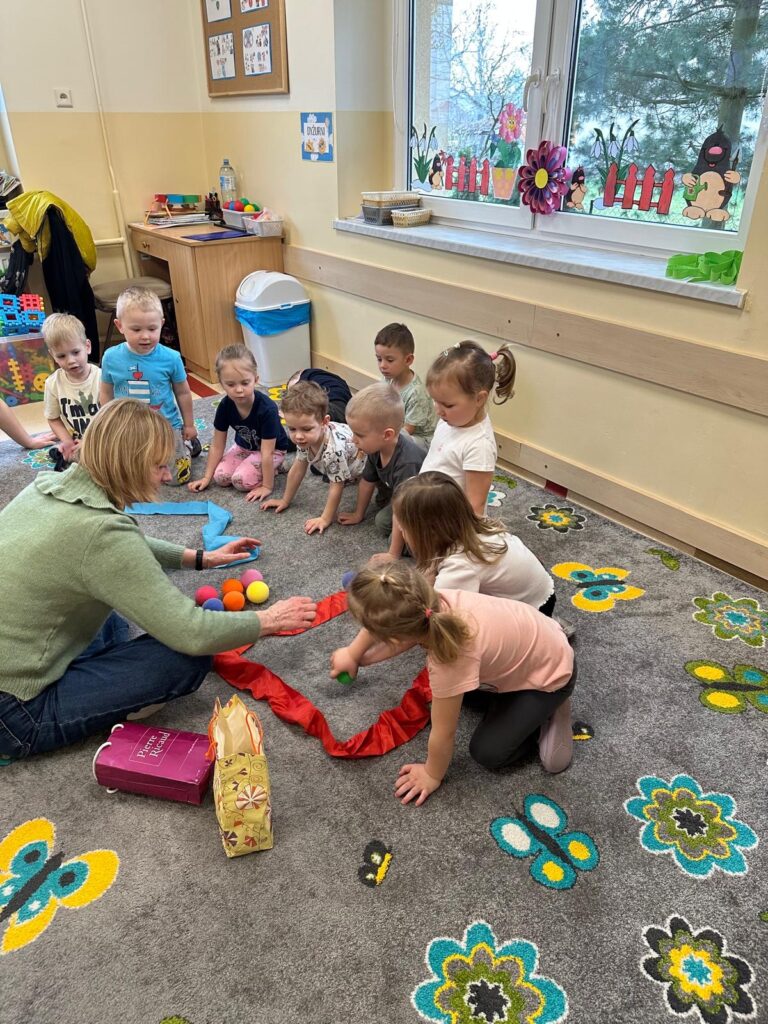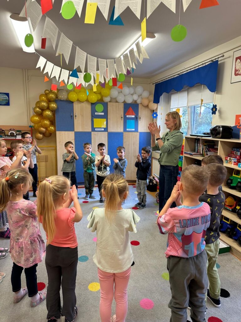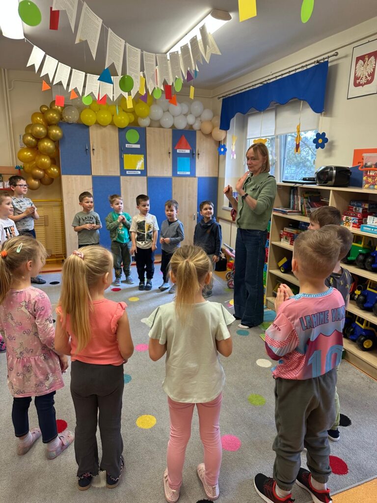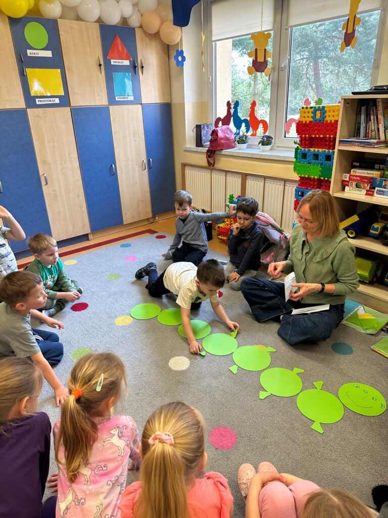 Tegoroczne obchody były wyjątkowe, ponieważ gościliśmy postać niezwykłą – Panią Krystynę Dąbek. To ekspertka, która o „dziecięcej matematyce” wie niemal wszystko. Dzięki jej obecności nasze przedszkolaki mogły doświadczyć nauki poprzez zabawę w jej najlepszym wydaniu. Pani Krystyna pokazała nam, że matematyka to nie tylko liczenie „jeden, dwa, trzy”, ale przede wszystkim umiejętność wyciągania wniosków i radość z odkrywania reguł rządzących światem.