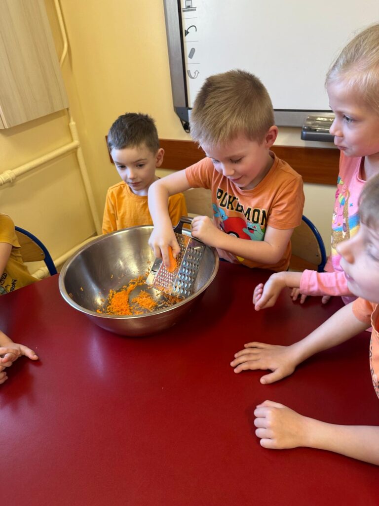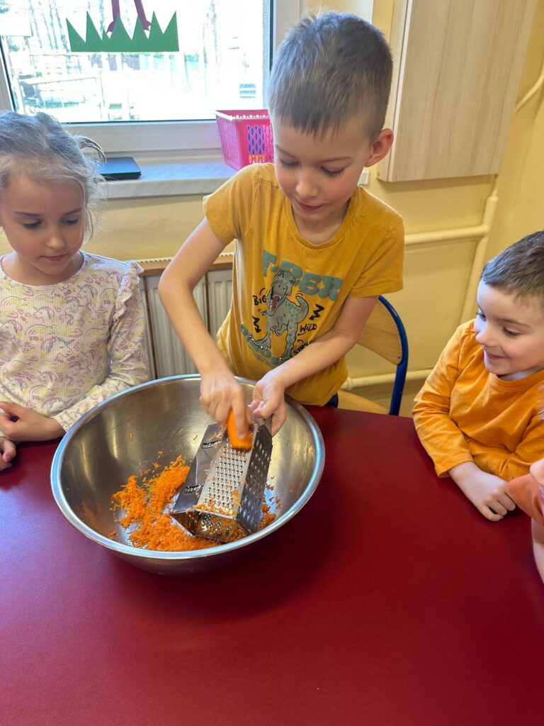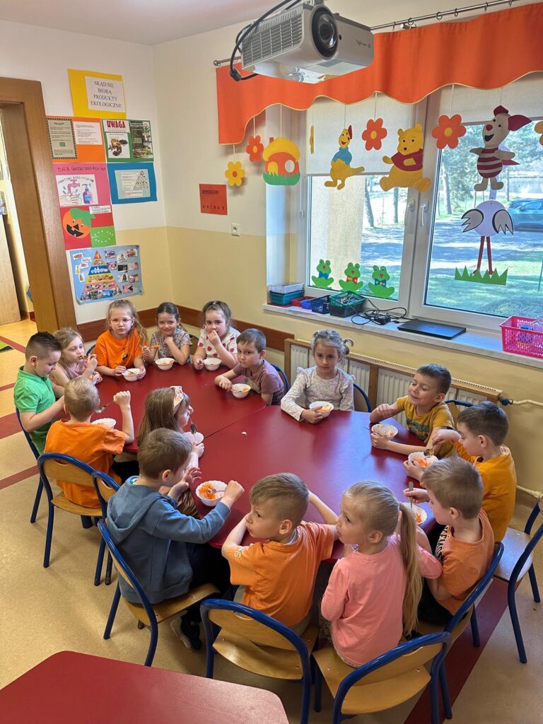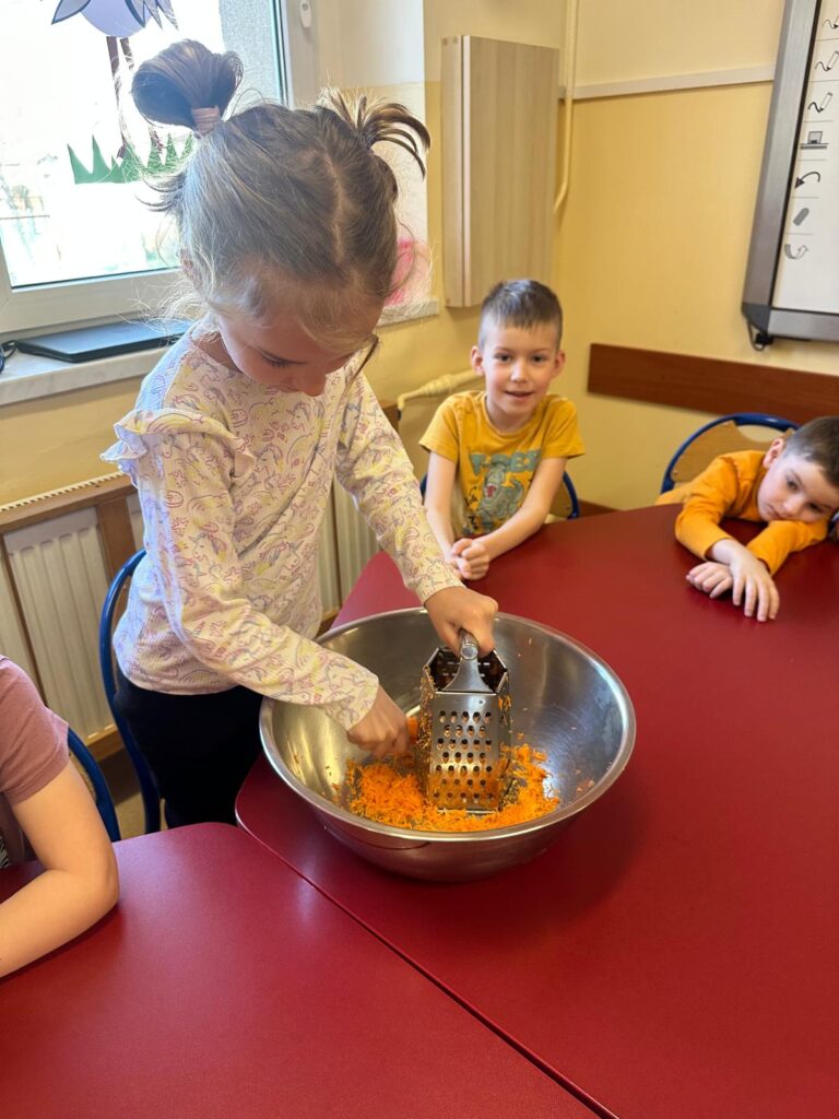 Dzień marchewki w przedszkolu to święto, które przypada 4 kwietnia. Celebruje się je, by zachęcić dzieci do jedzenia tego warzywa i poznania jego właściwości. Na to święto dzieci naszego przedszkola ubrały się w kolory przypominające marchewkę oraz przyniosły ze sobą pluszowe warzywa. Realizując program ’’Skąd się biorą produkty ekologiczne?” przedszkolaki poznały zalety i walory marchewki. Z filmu edukacyjnego dzieci mogły się dowiedzieć wiele ciekawych rzeczy: jak bardzo jest zdrowa , ile zawiera cennych witamin i składników odżywczych, jak korzystnie wpływa na skórę, włosy oraz wzrok. Ten „bardzo zdrowy dzień pomarańczowy” wypełniony był zabawami przy piosenkach o marchewce, pracami plastycznymi oczywiście o marchewce , wykonaniem surówki z marchewki i jabłka a także degustacją marchewkowego ciasta. Był to dzień ,w którym wszyscy dobrze się bawili i zdrową marchewkę bardzo polubili.