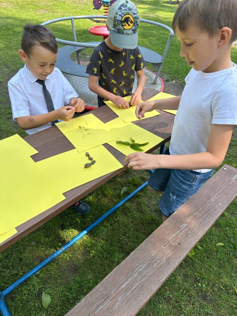 W naszym przedszkolu 12 i 13 czerwca obchodziliśmy#dzienpustejklasy2025 ! Zamiast tradycyjnych zajęć w salach, przenieśliśmy się na łono natury, aby uczyć się i bawić pod gołym niebem. To była prawdziwa przygoda, która sprawiła, że uśmiechy nie schodziły z twarzy zarówno dzieci, jak i wychowawców. Zaczęliśmy od sensorycznego spaceru. Dzieci z ciekawością dotykały kory drzew, szorstkich liści, gładkich kamieni i miękkiej trawy. Szukały też „skarbów natury” – patyków o ciekawych kształtach, jaskrawych kwiatów i błyszczących kamyczków. Te znaleziska posłużyły później do stworzenia improwizowanych dzieł sztuki na trawniku. Kolejnym punktem programu były zajęcia dydaktyczne z wykorzystaniem materiału przyrodniczego. Pani Bożena wykorzystała patyki i kamienie do nauki liczenia, a szyszki i patyki do tworzenia prostych wzorów. Dzieci układały z nich litery, swoje imiona i układały swoje obrazy. Nie mogło zabraknąć również aktywności fizycznych. Były tory przeszkód z wykorzystaniem naturalnych elementów oraz zabawy ruchowe. Z pewnością będziemy kontynuować tę wspaniałą tradycję, ponieważ wiemy, że takie dni to nie tylko zabawa, ale także cenna lekcja o szacunku do natury i radości z odkrywania świata.