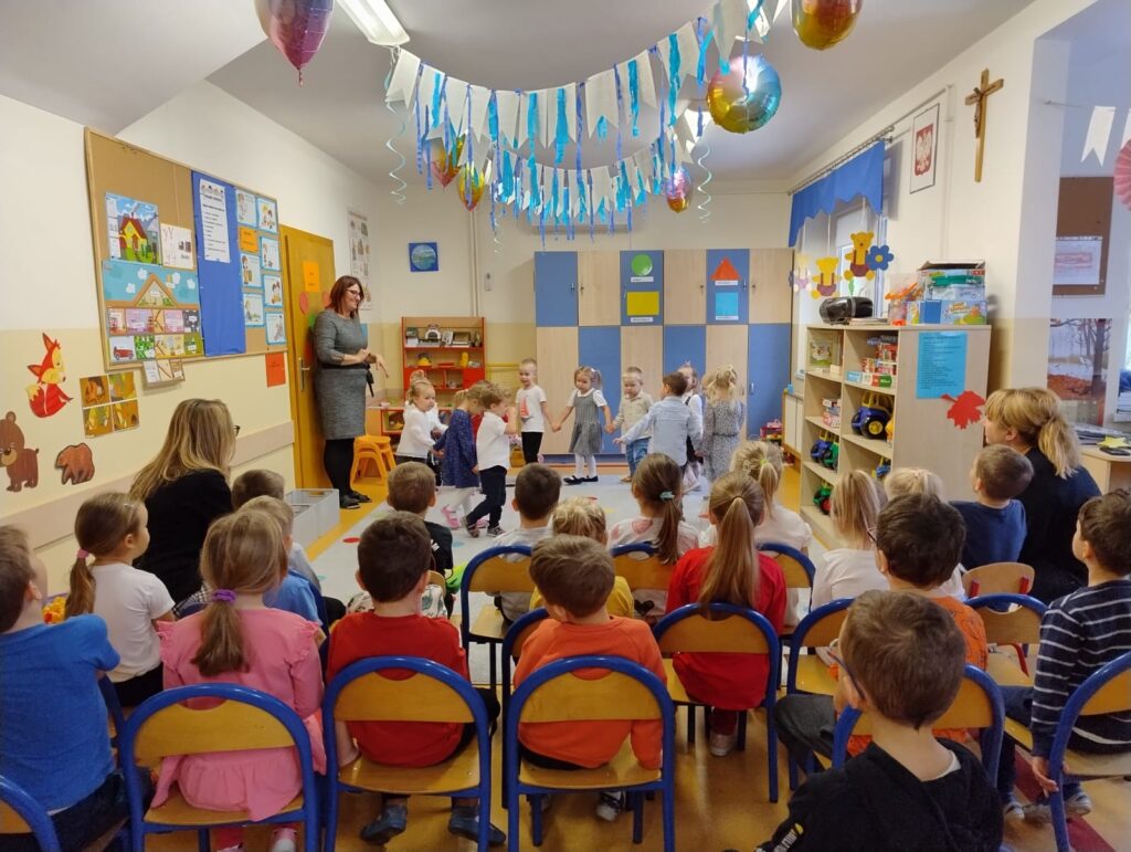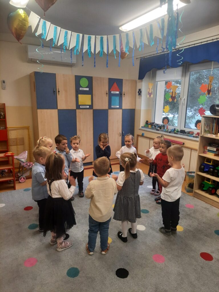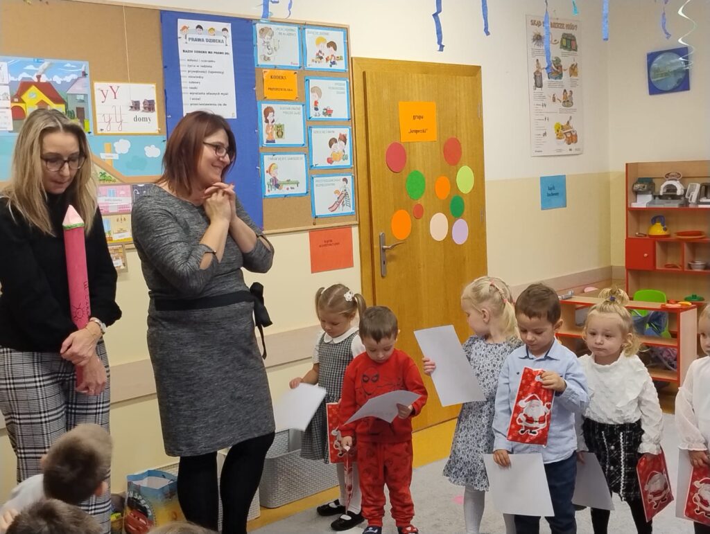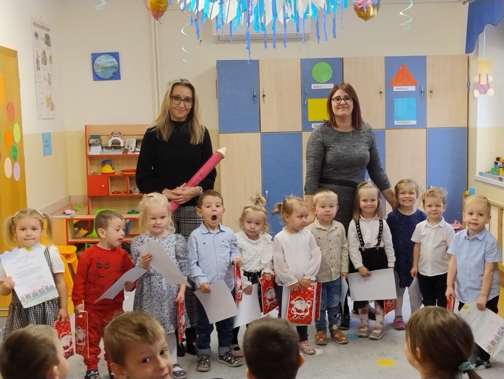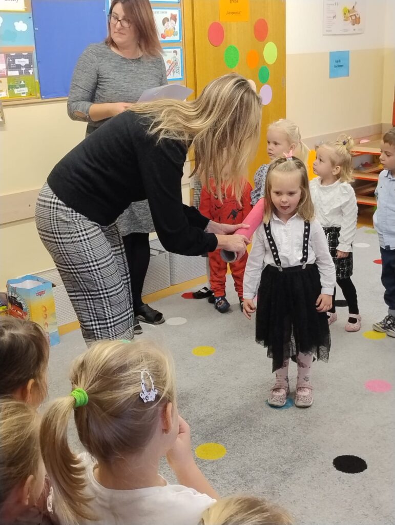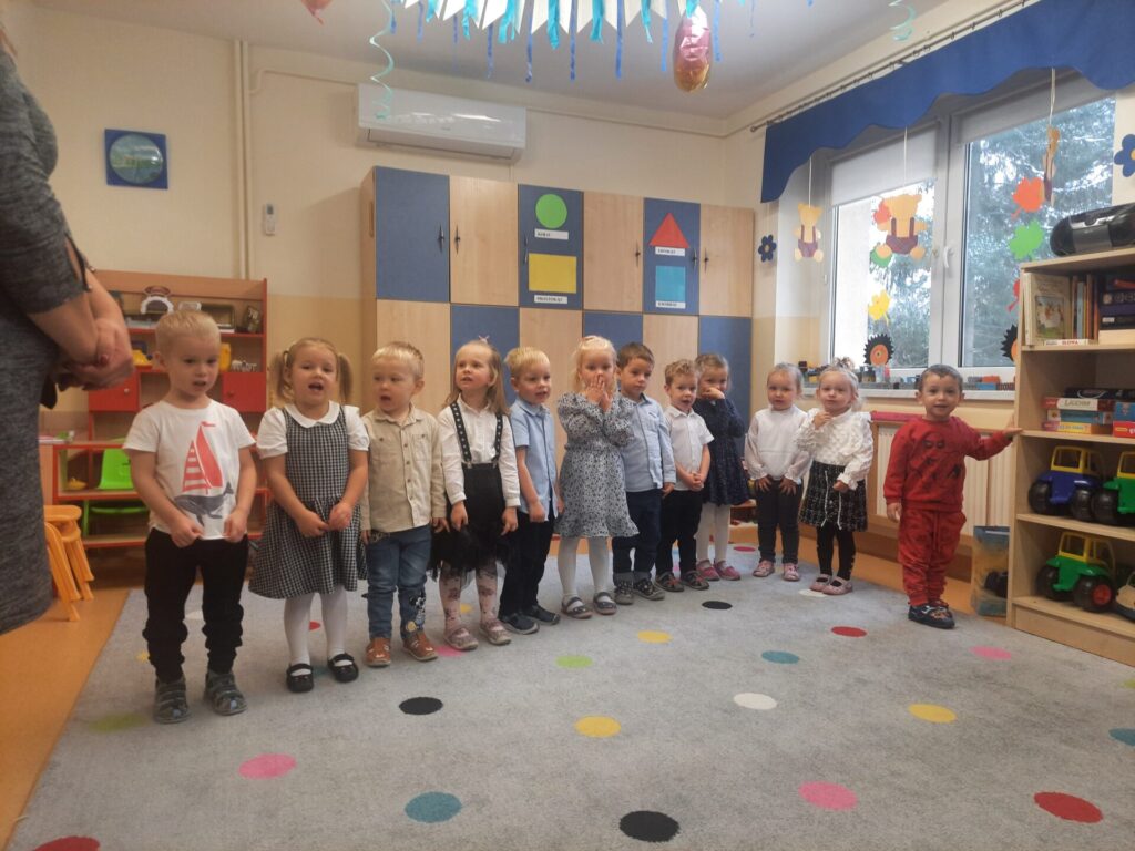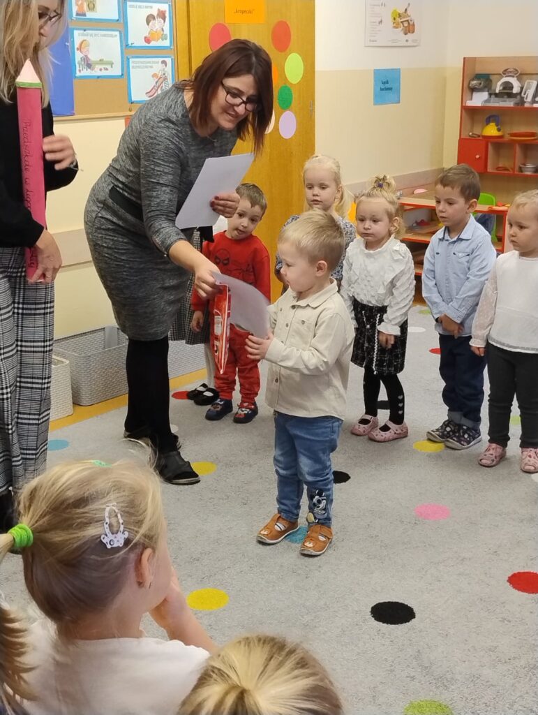 Dnia 24 listopada odbyło się w naszym przedszkolu Pasowanie na Przedszkolaka. Celem uroczystości było przyjęcie do grona przedszkolaków nowo przybyłych dzieci. Uroczystość odbyła się w obecności pani Dyrektor oraz dzieci z grupy „Kropeczki”. Był to szczególny dzień dla dzieci, które po raz pierwszy we wrześniu przekroczyły próg przedszkola. Był to również ich pierwszy publiczny występ przed licznie zgromadzoną publicznością. Dzieci wesoło prezentowały swoje umiejętności : śpiewały, tańczyły, recytowały wiersze. Następnie odbyło się uroczyste pasowanie przez Panią Dyrektor. Na pamiątkę tego pięknego wydarzenia każde dziecko otrzymało dyplom oraz małą niespodziankę.