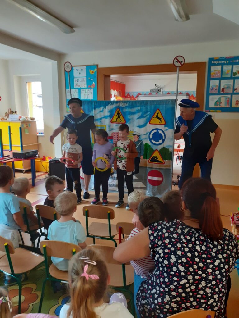 W czwartek 19.09.2024r. rozpoczęliśmy świętowanie w naszym przedszkolu Ogólnopolskiego Dnia Przedszkolaka. Jako pierwsi zagościli u nas aktorzy Teatru Jana Kochanowskiego w Opolu z przedstawieniem „Elemelek dba o bezpieczeństwo”. Dzieci przypomniały sobie zasady ruchu drogowego oraz jak się zachować w środkach lokomocji. Oczywiście było dużo śmiechu i dobrej zabawy.
